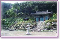산기슭에 조성되어 있는 작은 건물로 정면과 측면이 각 1칸의 규모로 홑처마에 맞배지붕을 올린 아담한 건물입니다. 띠살창으로 짜여진 창호는 2분합의 여닫이문을 달았습니다. 외벽에는 꽃을 그려 장엄을 하고 있습니다. 내부의 바닥은 마루를 깔았고 천정은 서까래를 노출시킨 연등구조입니다.